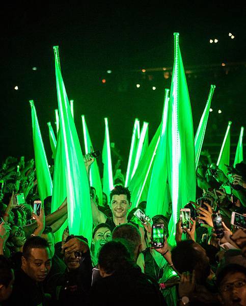 2015年巡迴演出時甚至會招募每個國家的粉絲們當護駕團(舉著綠色大旗子揮啊揮的,為了效果和幫Danny開路,官方直播都會從Danny走綠色走道開始XD)