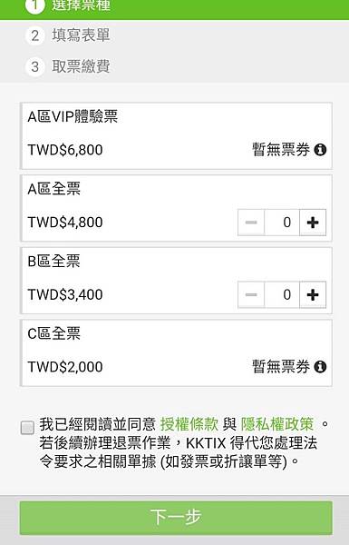 另外有朋友要刷的兩張2000據說在點進去那秒就沒了(圖片佐證XD果然最便宜跟最貴的票會瞬間沒了