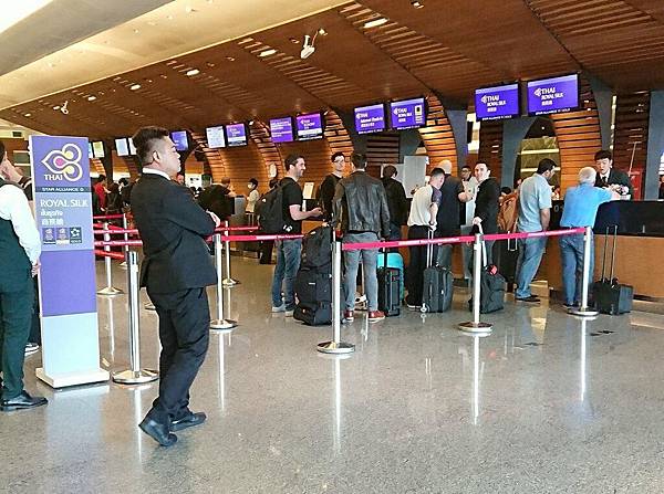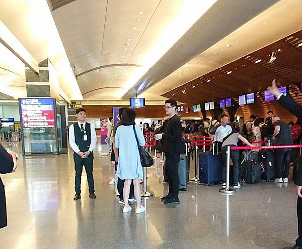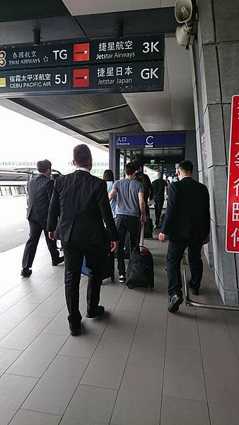 我們在後面默默跟著他們到泰航商務艙排隊check in,Glen頻頻望向我們這邊對我們微笑(我們一直舉著牌子和布條),Mark最先辦好手續所以先在旁邊等著,等所有人處理好後,團員們和台灣的保鑣和工作人員握手道謝和拍照(隨行的女生有抱到Danny!!超羨慕的啊啊啊)